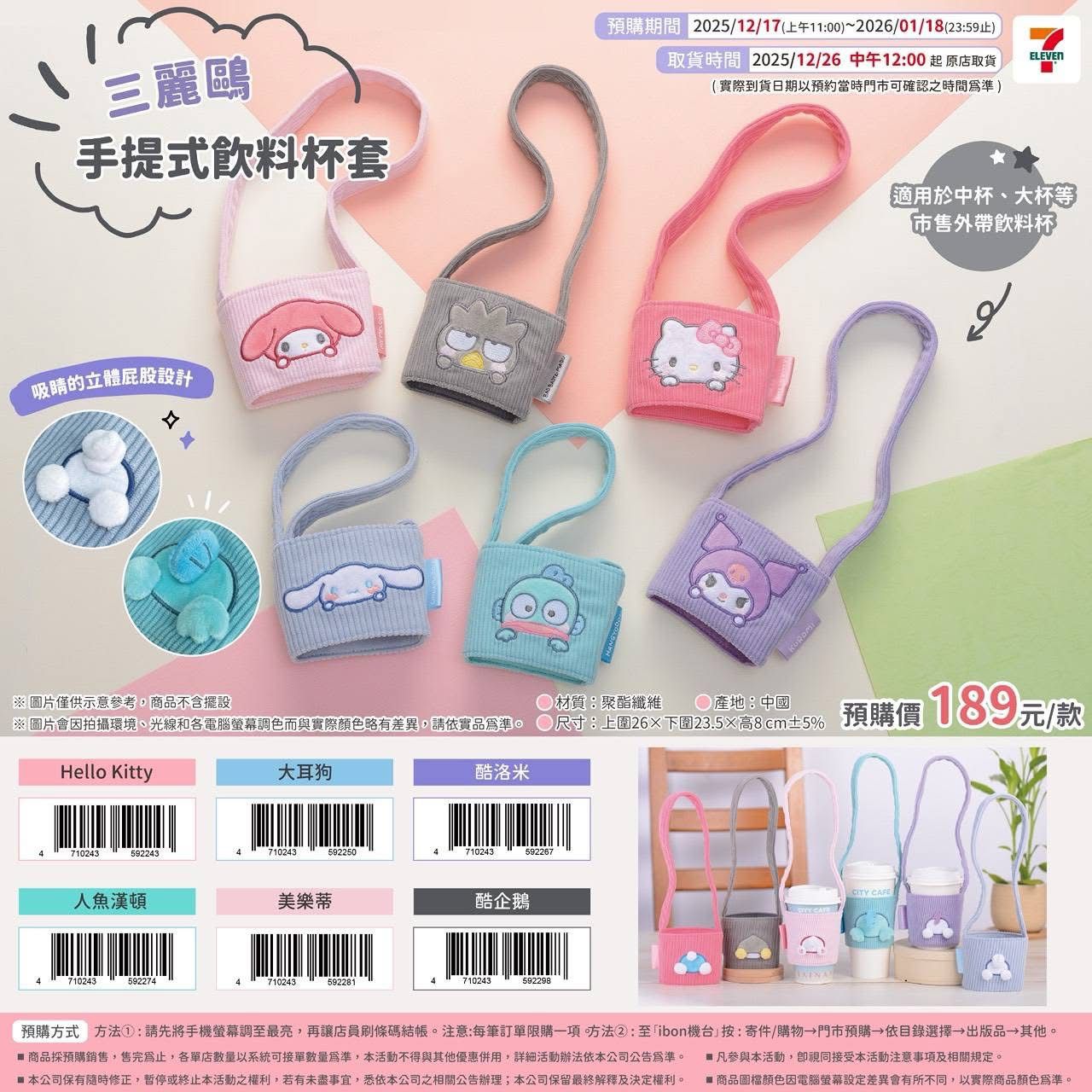 (17/12-18/1) 台灣7-eleven預購 三麗鷗手提式飲料杯套